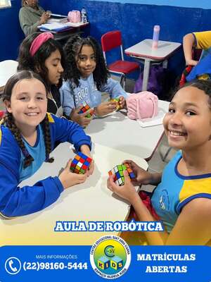 Além das disciplinas tradicionais, oferecemos Robótica, Inglês, Educação Física, Artes e Musicalização.